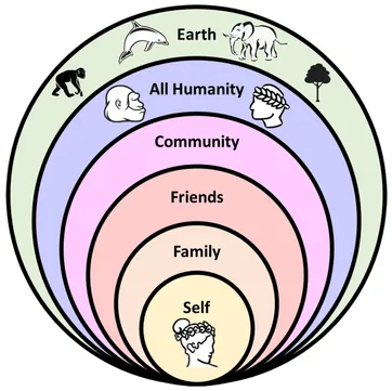 Hierocles explain this with a famous image of “concentric circles.” We are all born with the first circle: love for ourselves and self-preservation. Then, we get familiar with our parents and start to project on them the same attachment (love) we think for ourselves. Then, we do the same for our entire family. Then, for our friends.